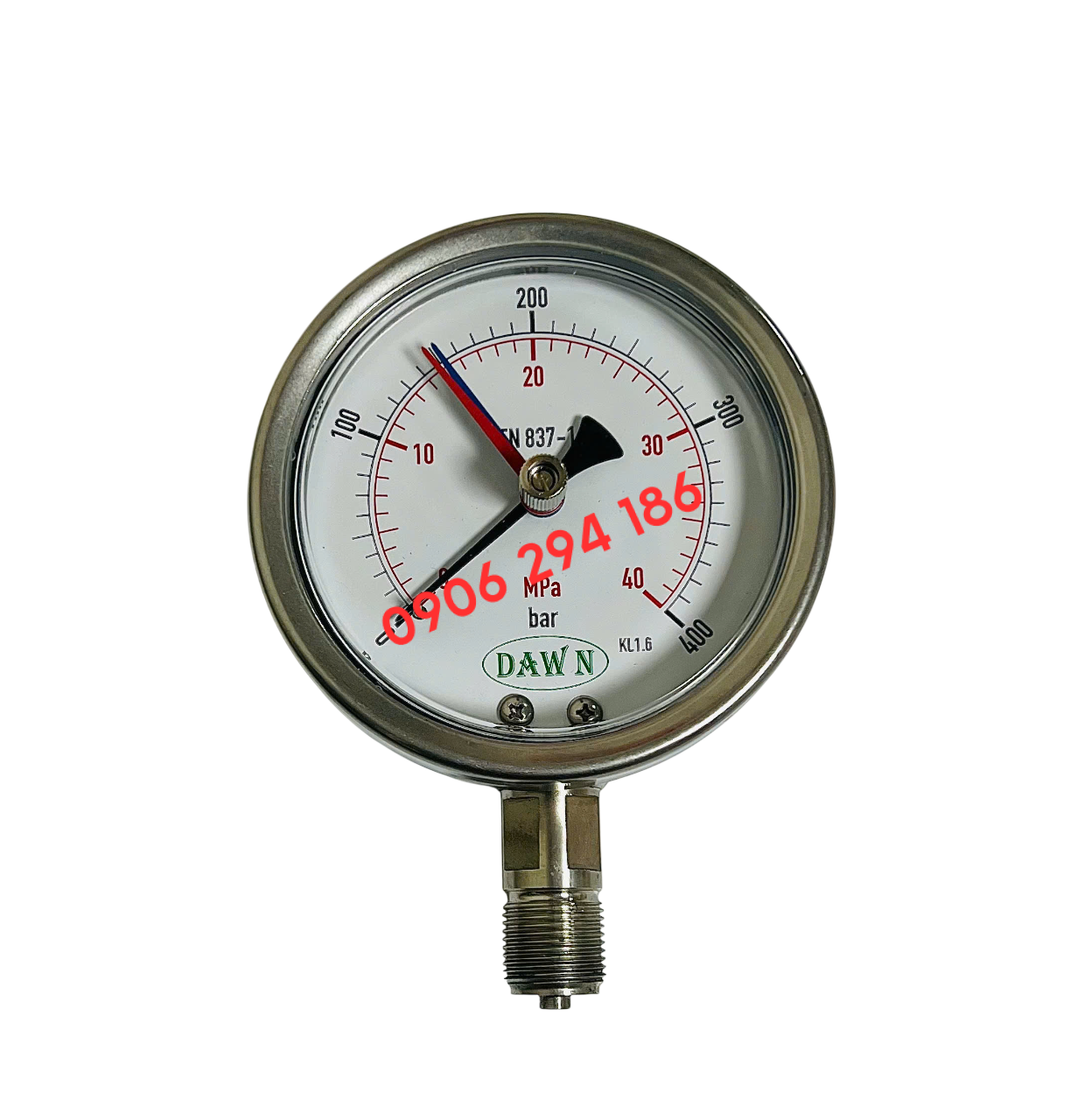 ✅ Đồng hồ áp suất DAWN 3 kim dạng cơ F100 0-40MPa