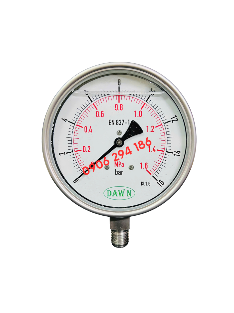 | Dải đo – khả năng | Ví dụ: 63 và 80 mm: từ –0,1 ~ 0 đến 0 ~ 100 MPa; 100 mm: đến 0 ~ 200 MPa. Vì 0-16 bar tương đương ~0-1.6 MPa thì nằm trong phạm vi nhỏ hơn rất nhiều so với max, nên khả thi là có theo đặt hàng riêng. |